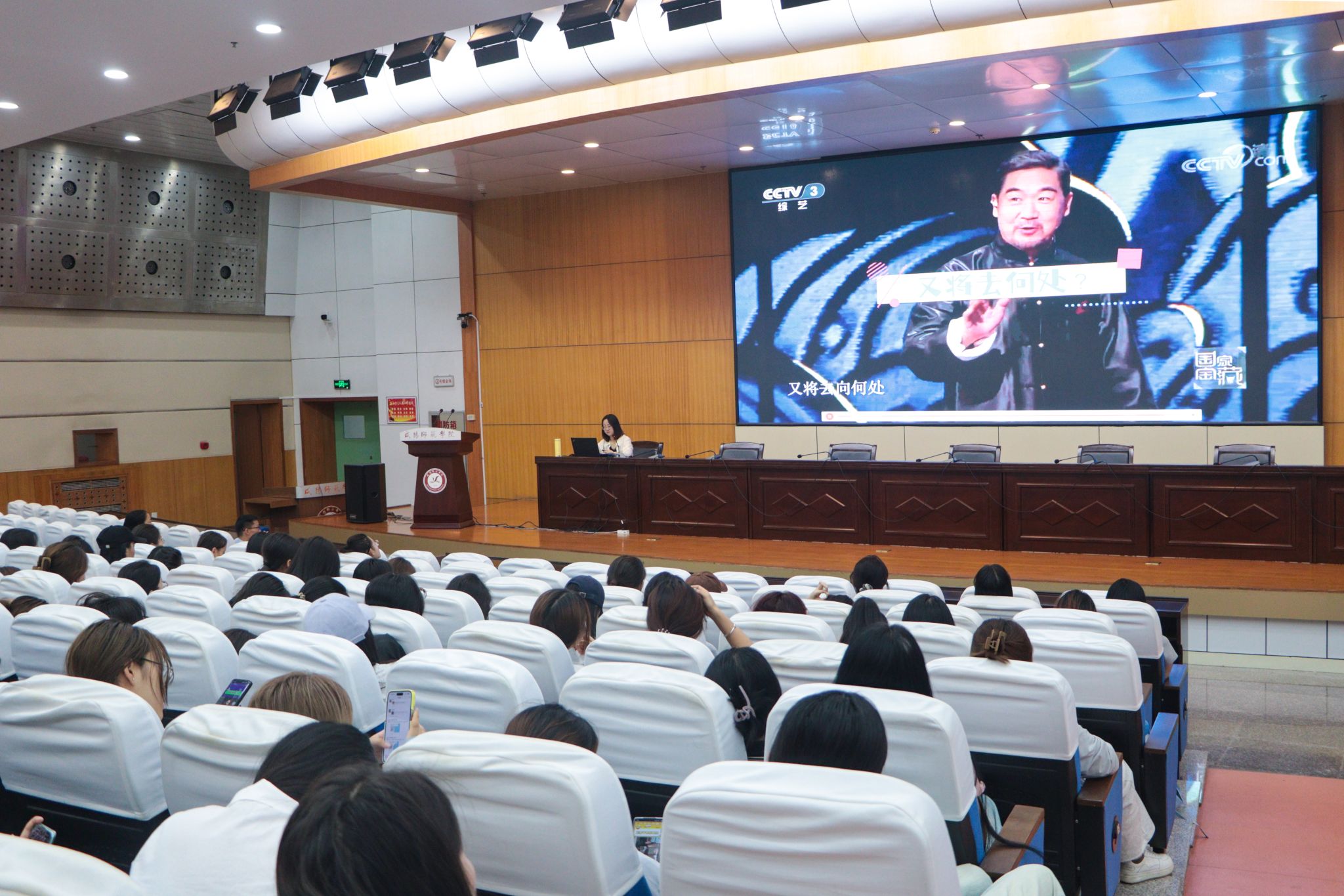 于源老师以《唤醒生命力实现专业成长——以思想政治教育教师专业成长为例》为题,从实现专业成长、打造鲜活课堂、练就实用技能和实现人生目标四个角度展开,强调思政课教师要注重积累、勤于思考、合作交流、潜心教研。她结合自身多年执教经历和体会指出,思政课堂一定要注重课堂内容与形式的统一和思维创新,树立“小题大做”的严谨态度,不断改善自身教学方式和员工的学习方式,研究新问题、新角度、新观点,做到语言艺术上的言之有物、言之有理、言之有信、言之有情。最后,于源老师寄语同学们在日常生活中扎实积累、努力奋斗,早日实现自身的人生目标。
